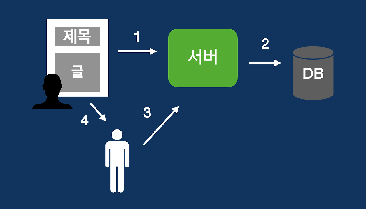 - 다른 사용자가 해당 서버의 DB에 저장된 글을 읽으면